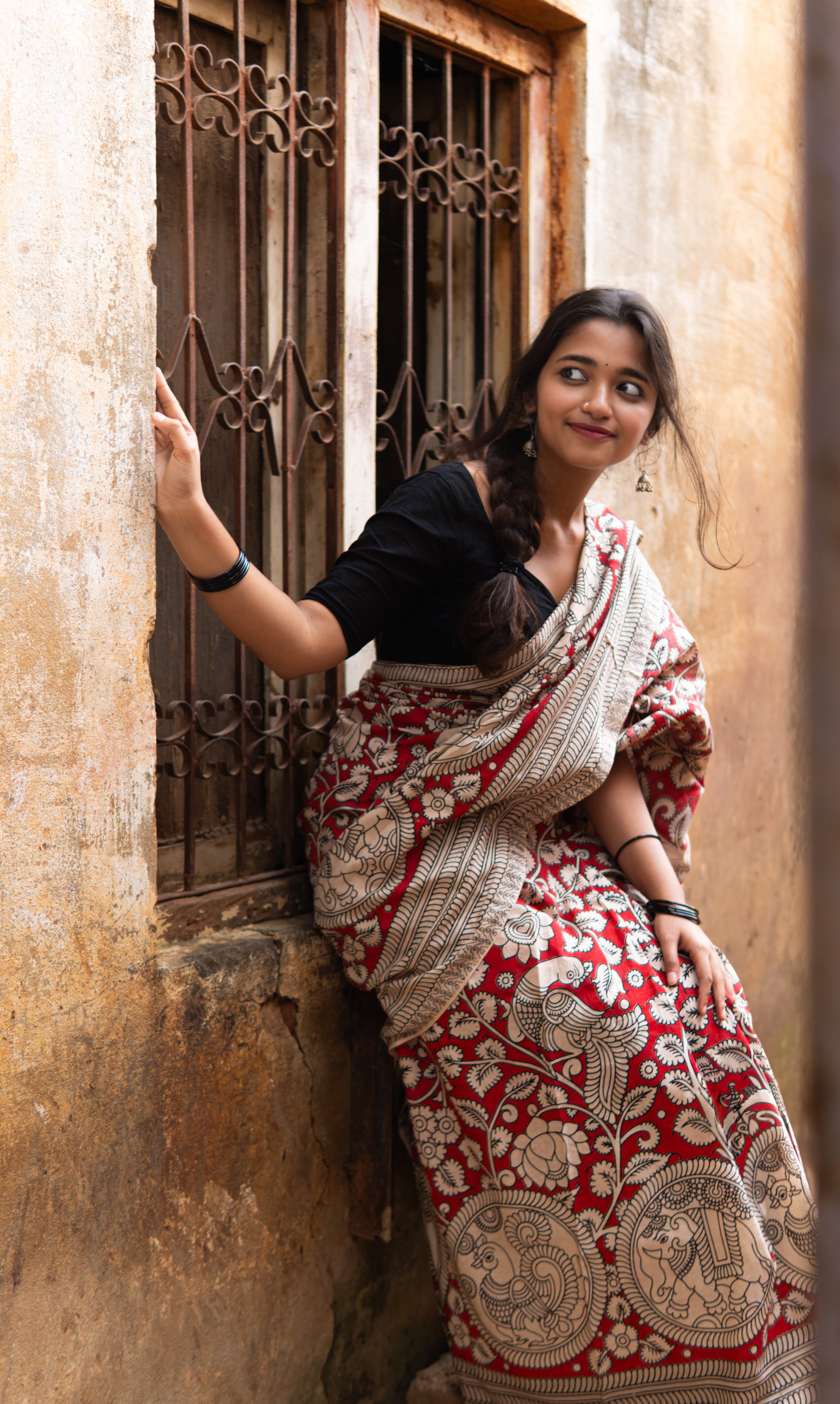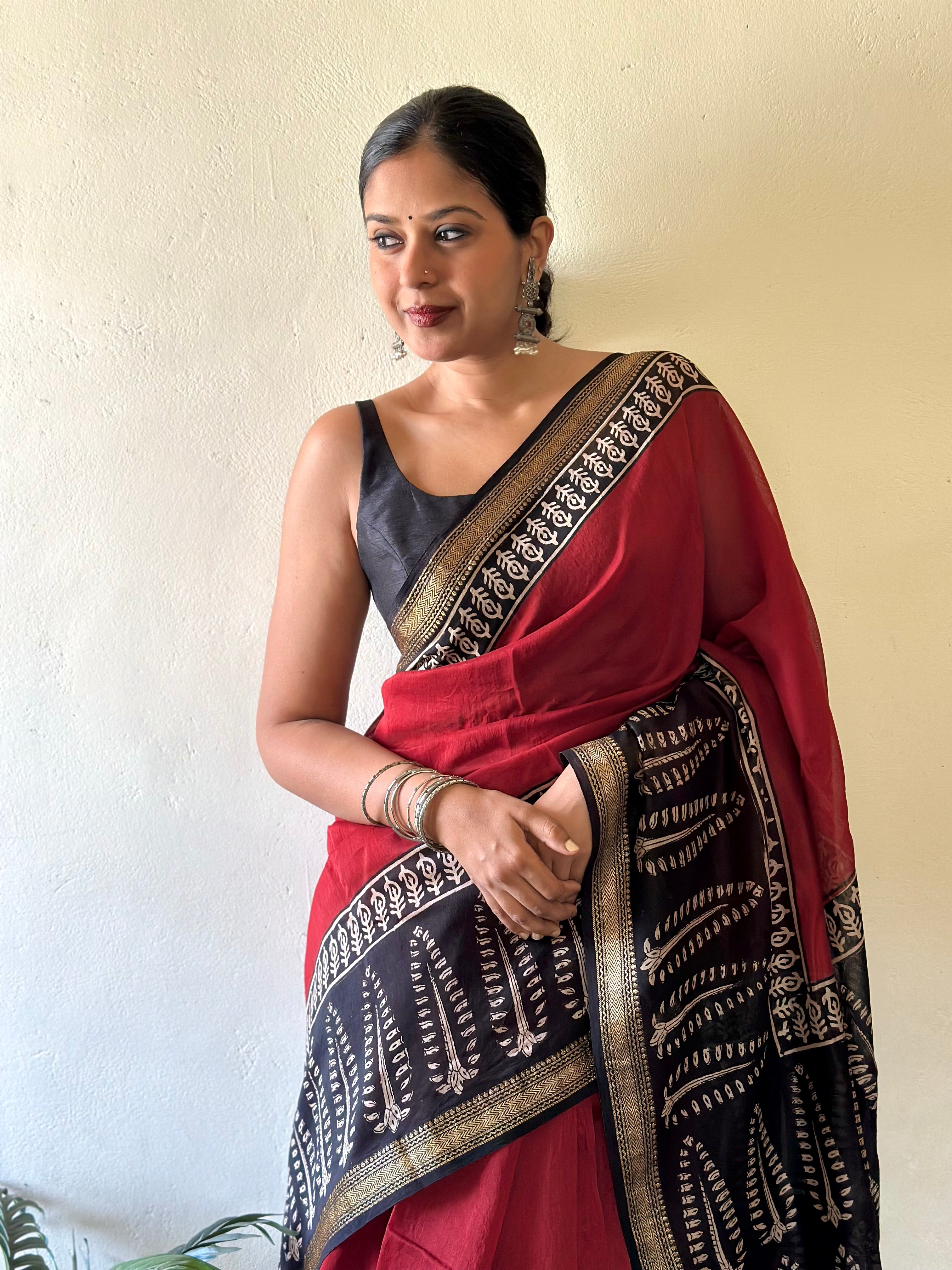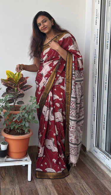 Beautiful red saree Best kalamkari saree I have seen.