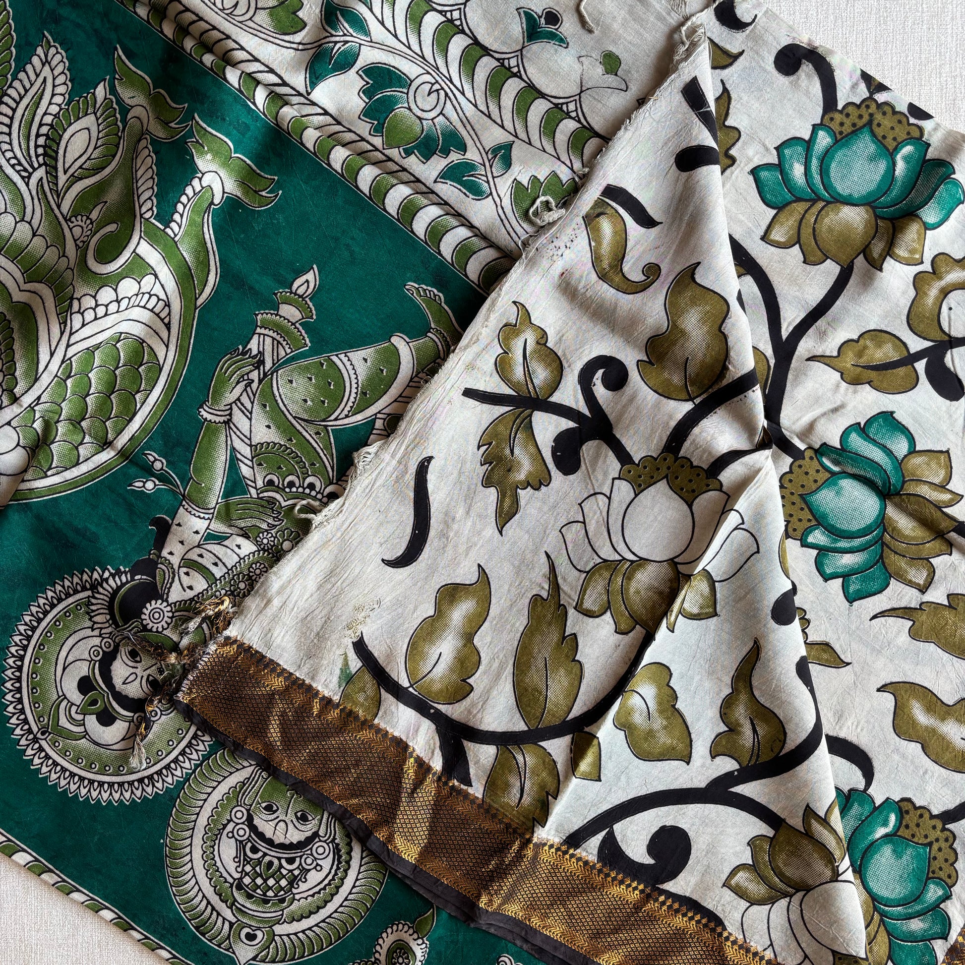 NOTE: These are authentic Kalamkari sarees, made with natural organic dyes and dried under the sun.