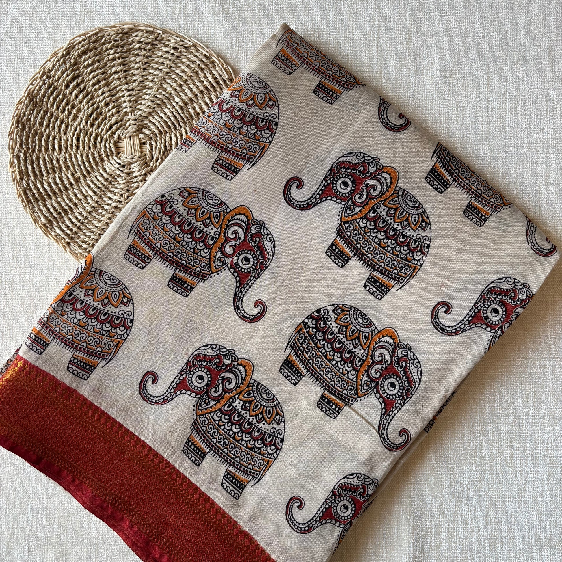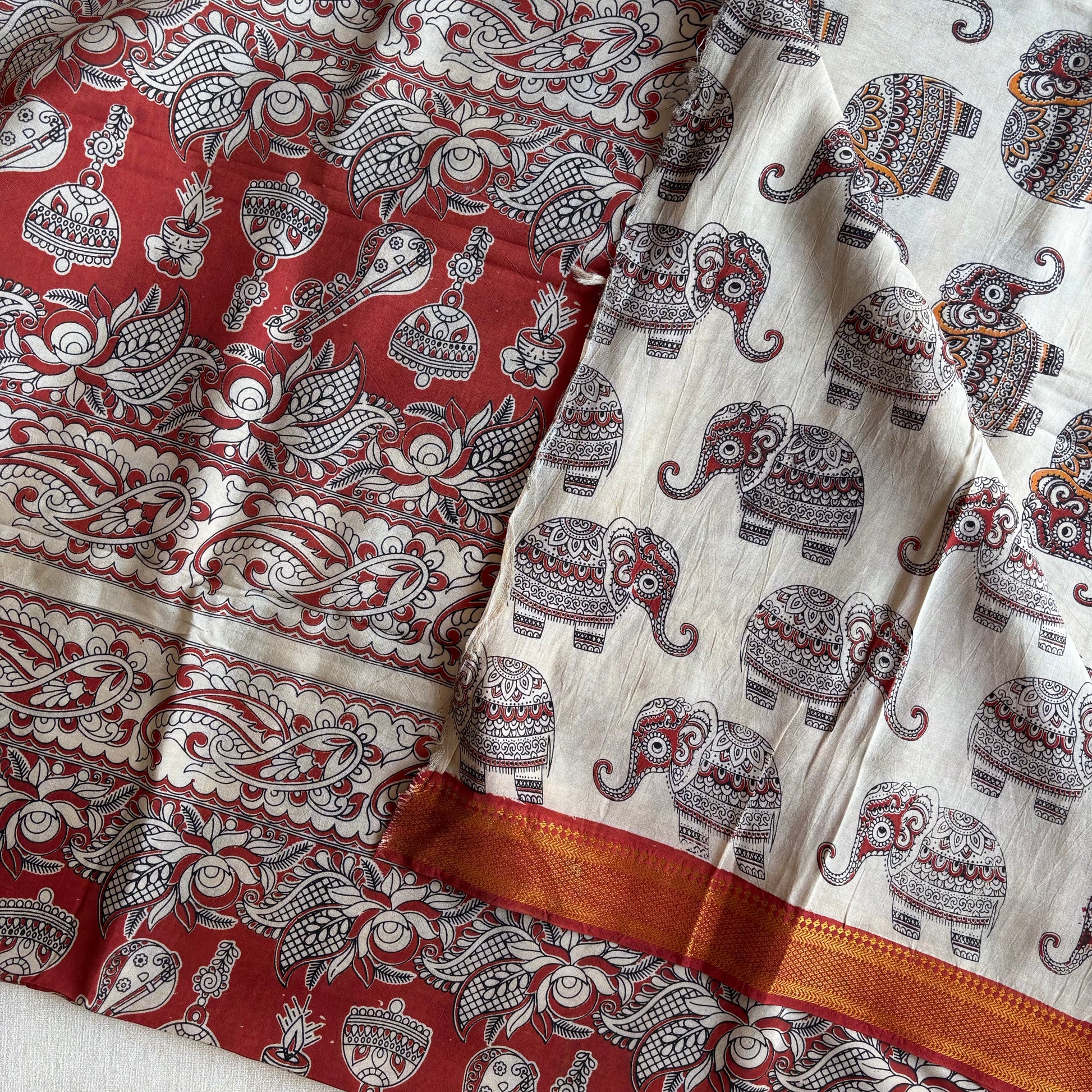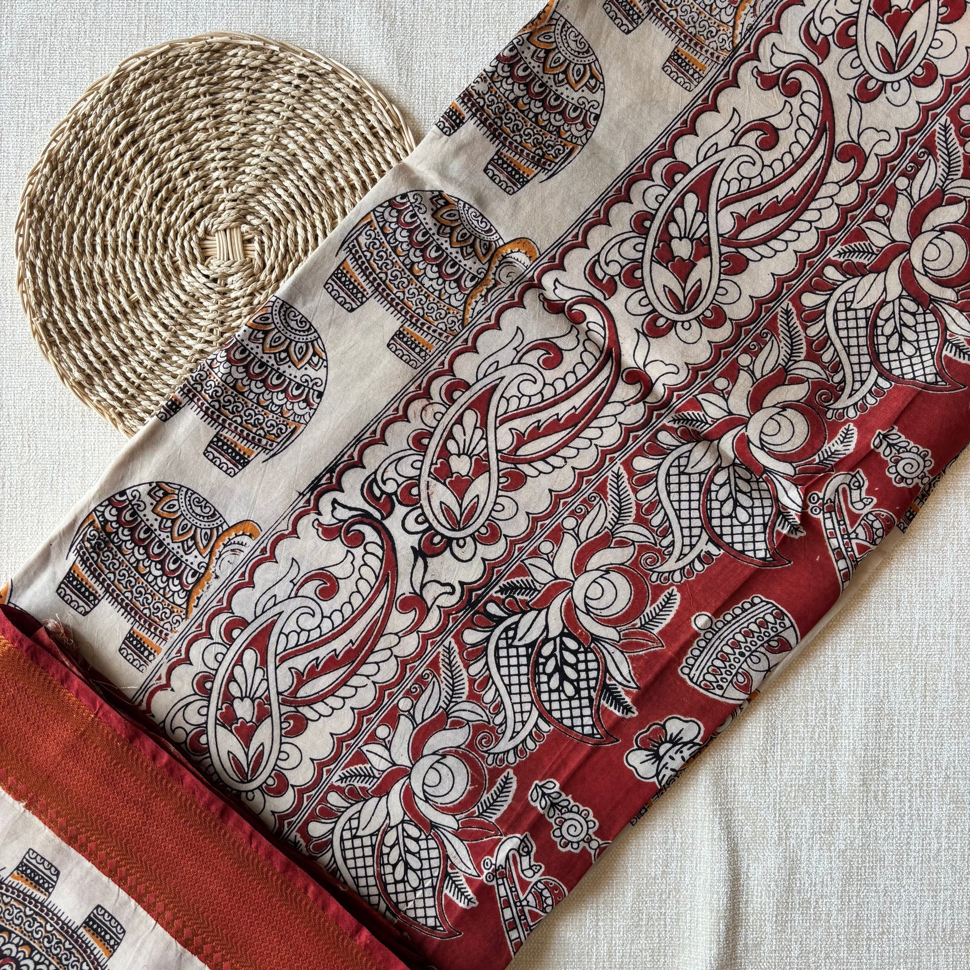 NOTE: These are authentic Kalamkari sarees, made with natural organic dyes and dried under the sun.