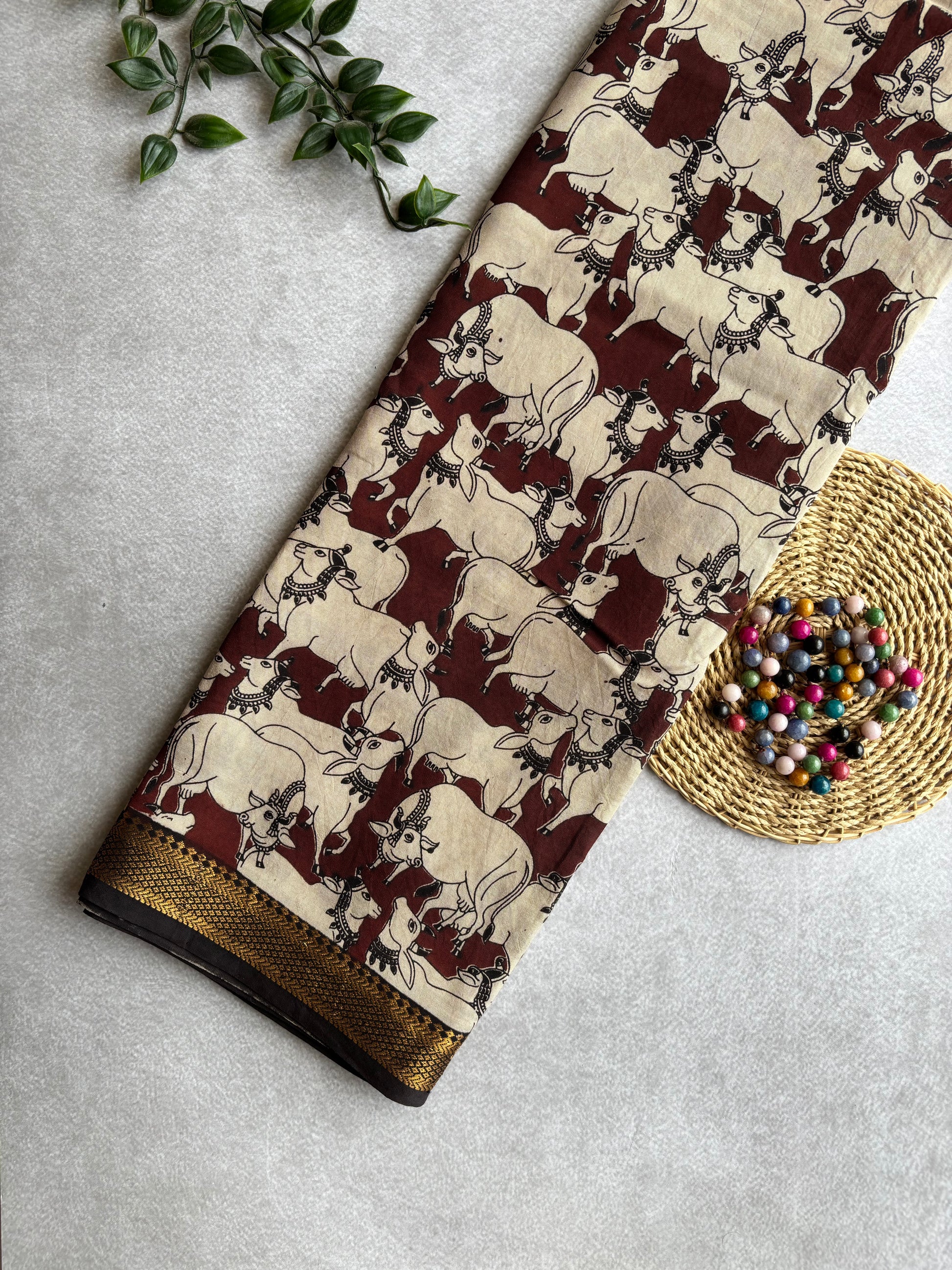 NOTE: These are authentic Kalamkari sarees, made with natural organic dyes and dried under the sun.