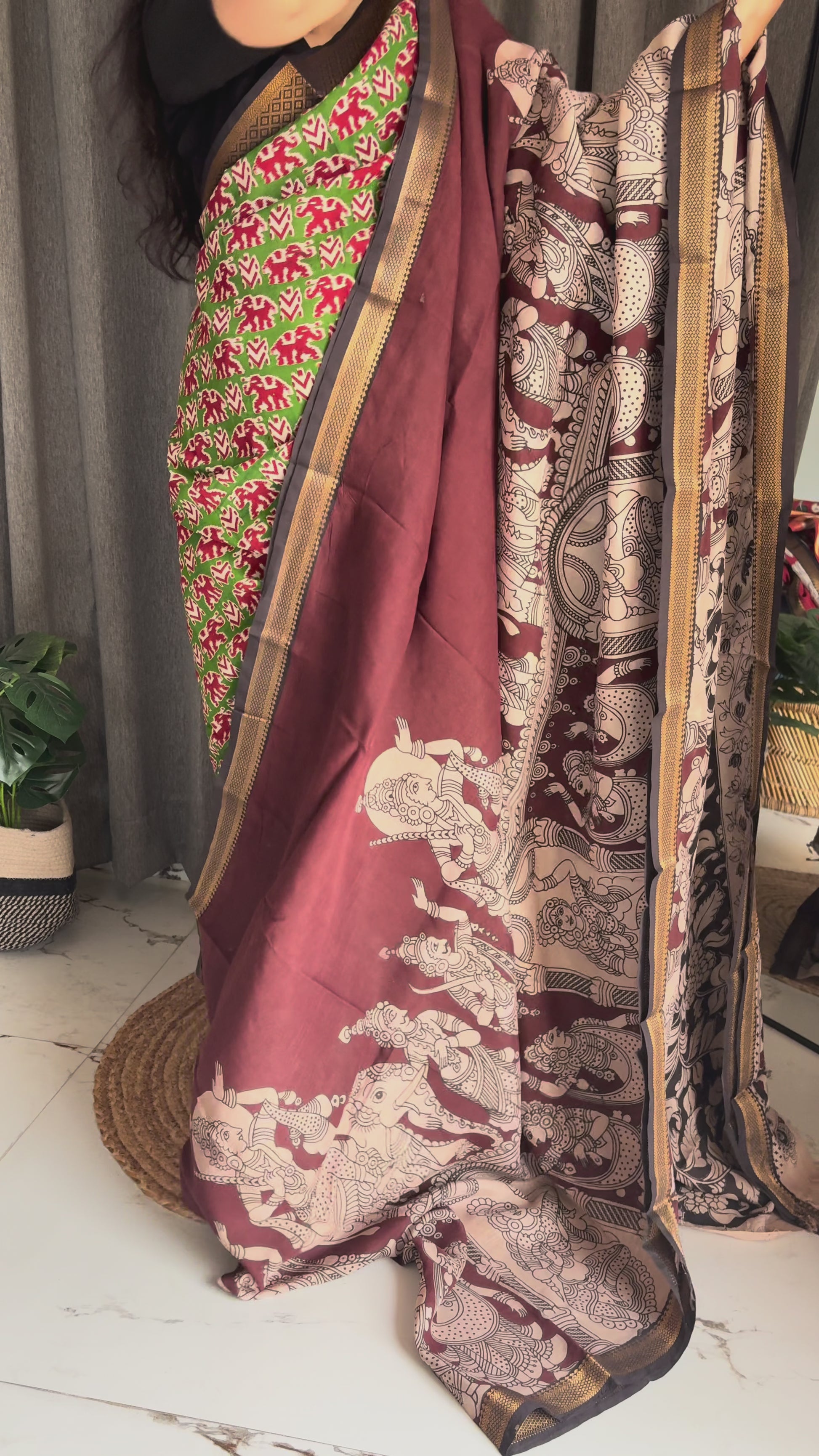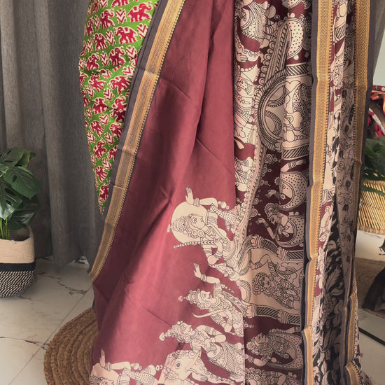 NOTE: These are authentic Kalamkari sarees, made with natural organic dyes and dried under the sun.