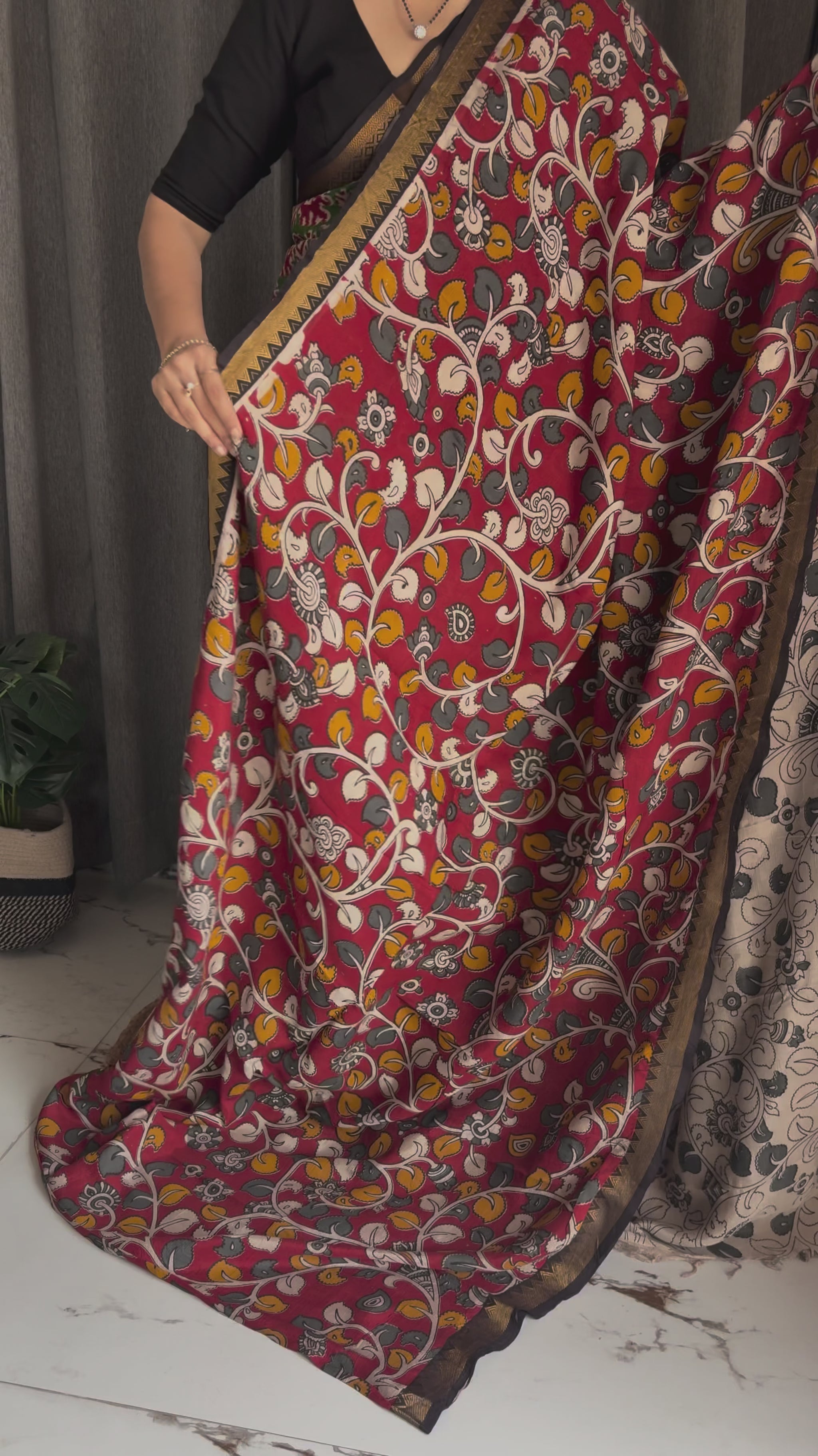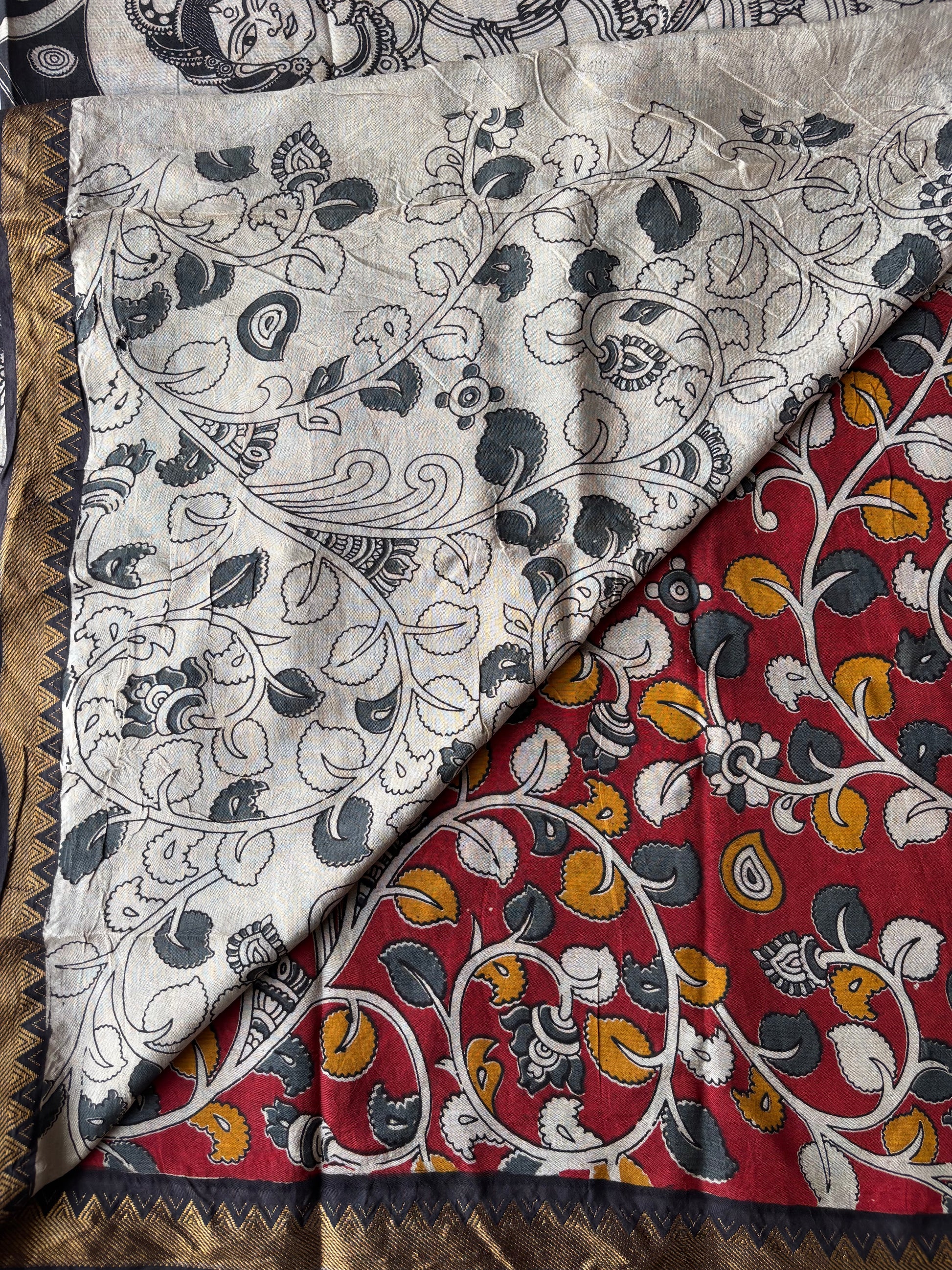 NOTE: These are authentic Kalamkari sarees, made with natural organic dyes and dried under the sun.