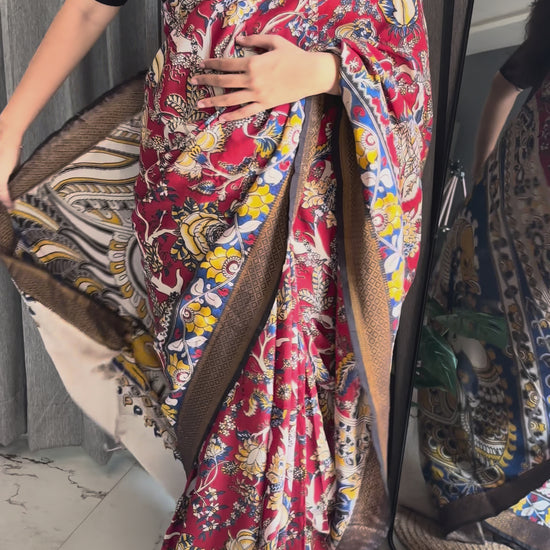 NOTE: These are authentic Kalamkari sarees, made with natural organic dyes and dried under the sun.