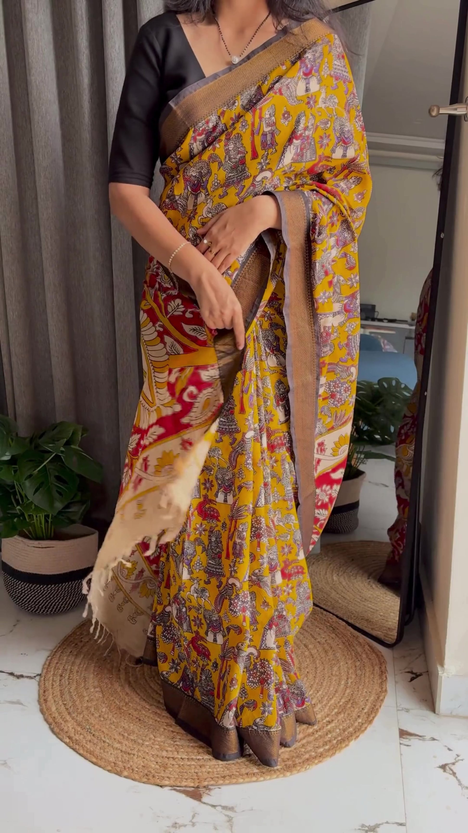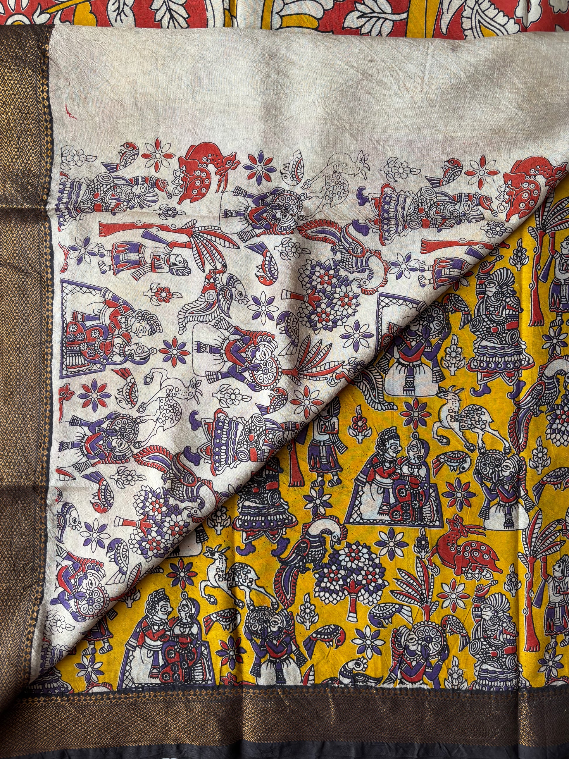 NOTE: These are authentic Kalamkari sarees, made with natural organic dyes and dried under the sun.
