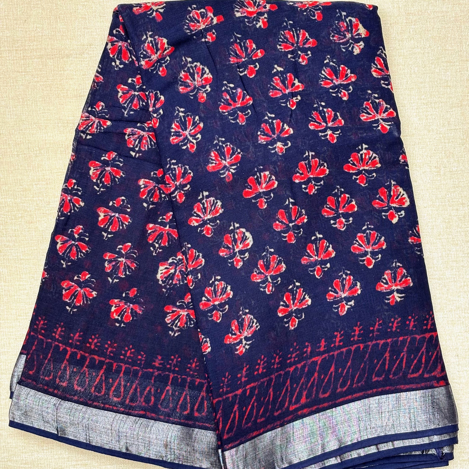 Linen Cotton Block print - Navy Blue